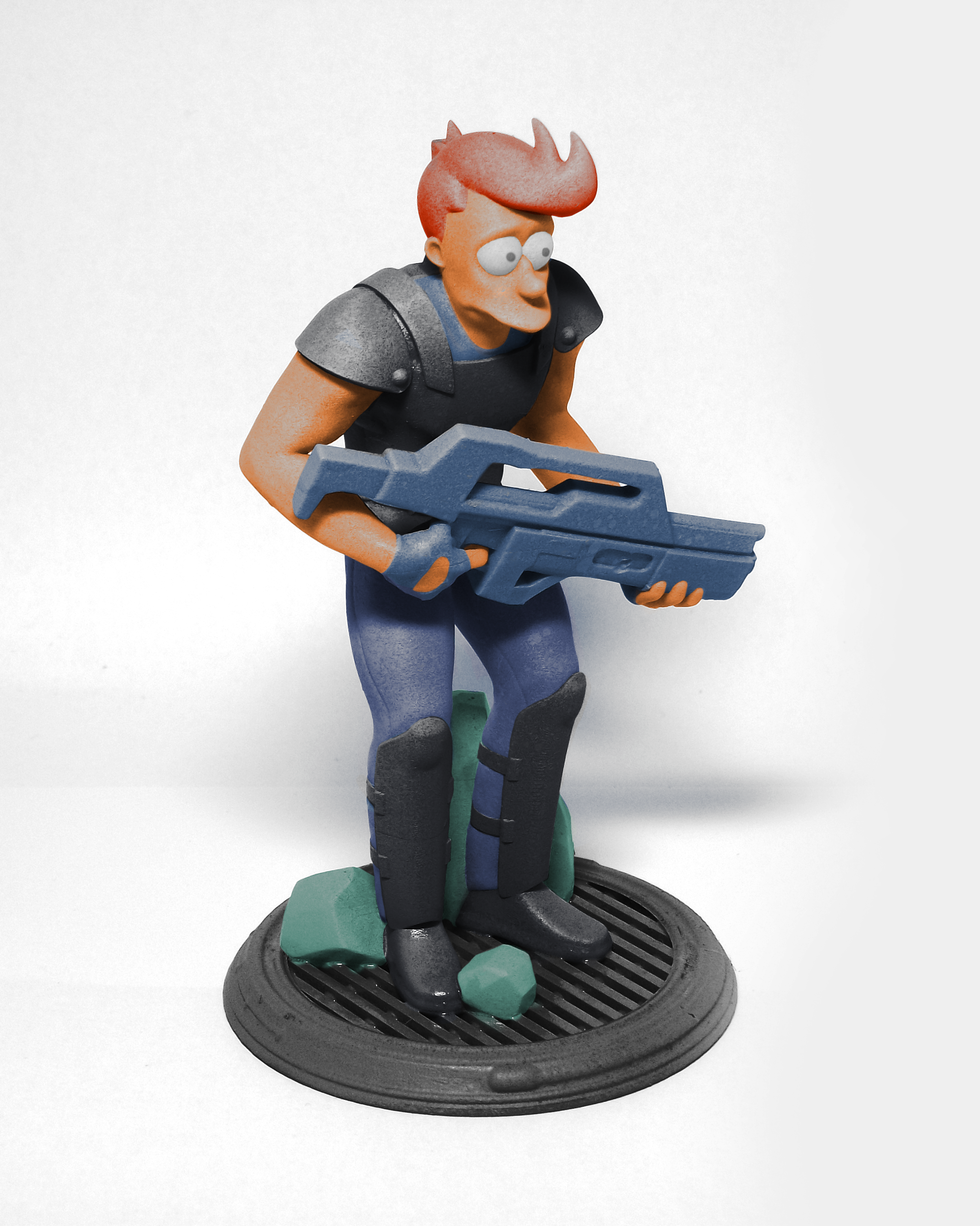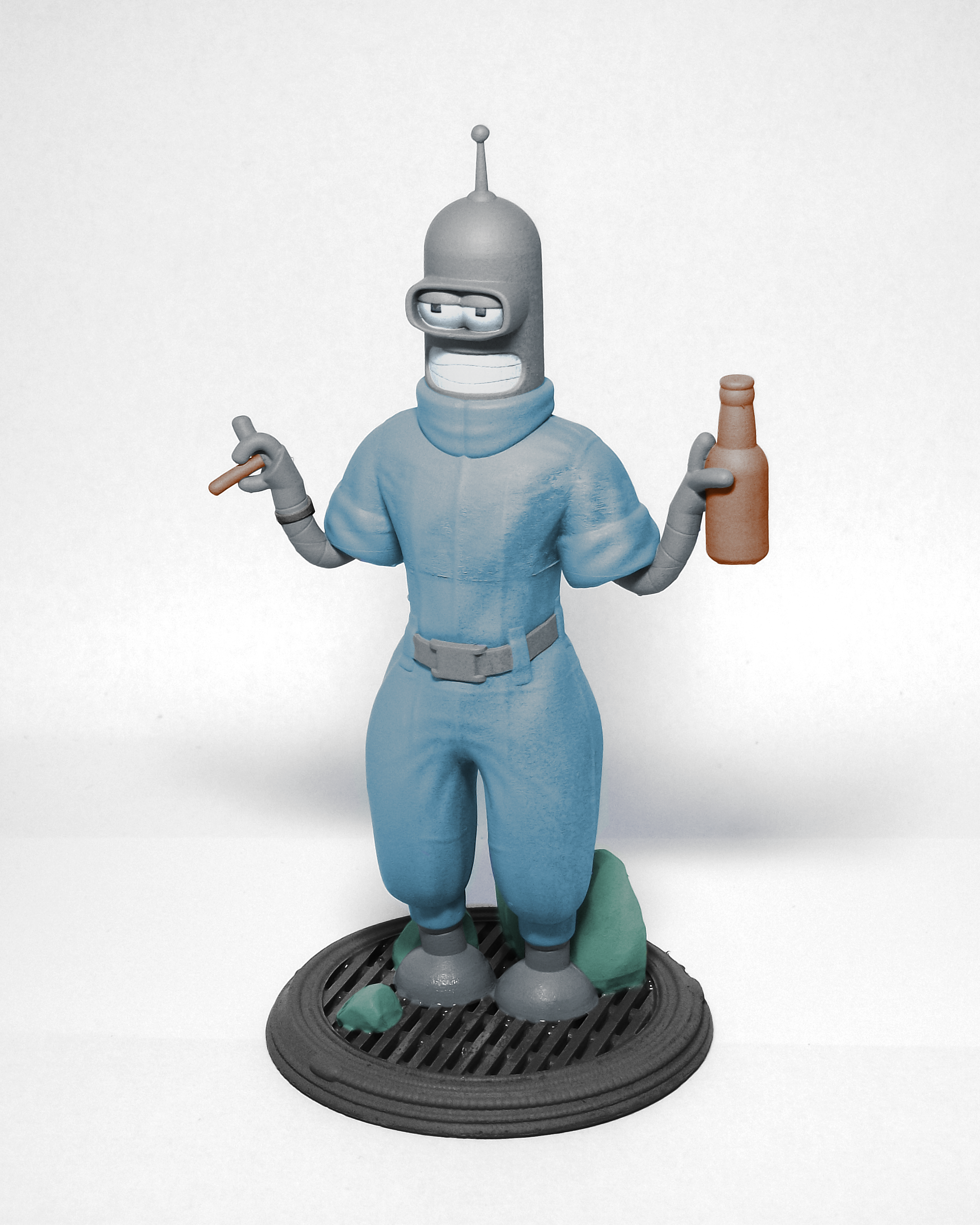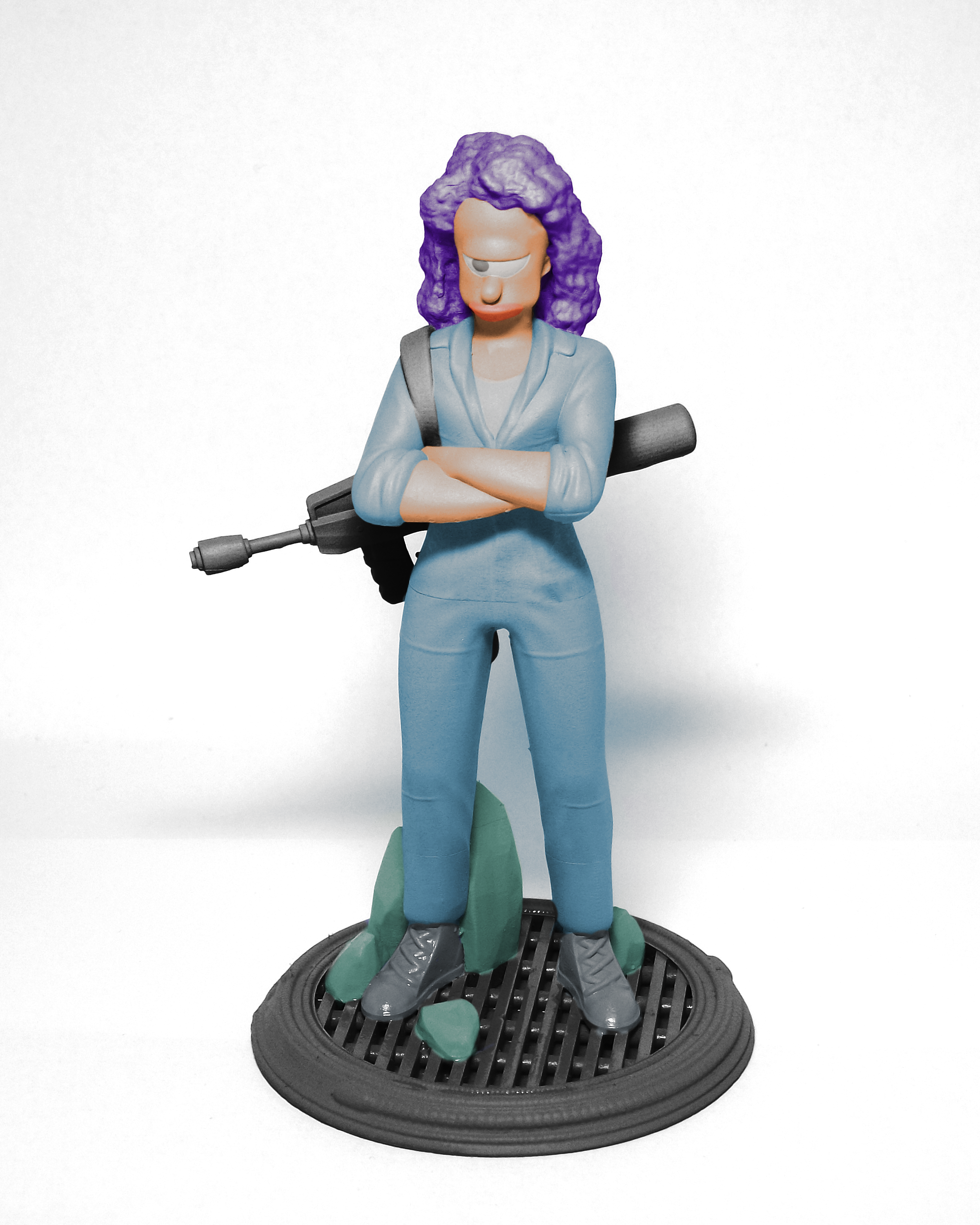 A cross-over between the Futurama series and Alien movie. ‘Sculpted’ with Blender and 3D printed on a Photon Mono X (Anycubic). Manually painted with acrylic paint.