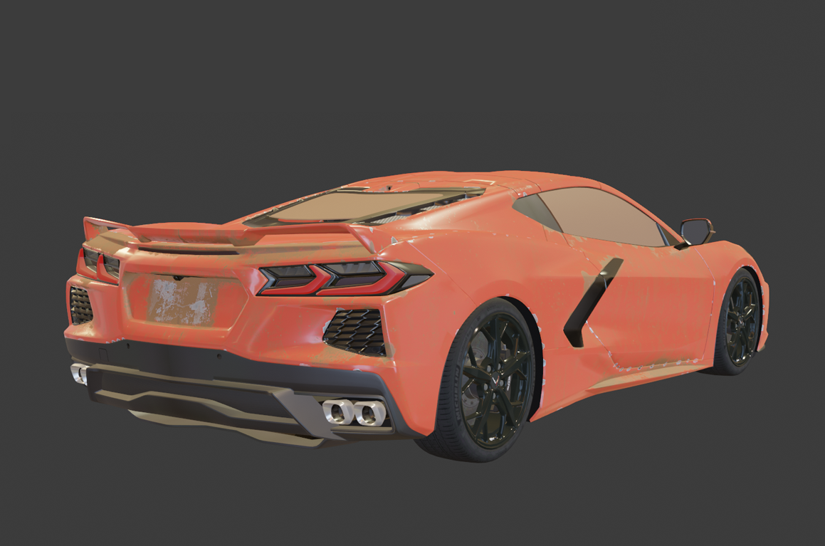 A 3D model of a Chevrolet Corvette I made for a racing video game demo. Modeled with Blender using the ‘subdivision’ method and textured with Substance Painter for a ‘dirty’ look. Rendered with Cycles in Blender.