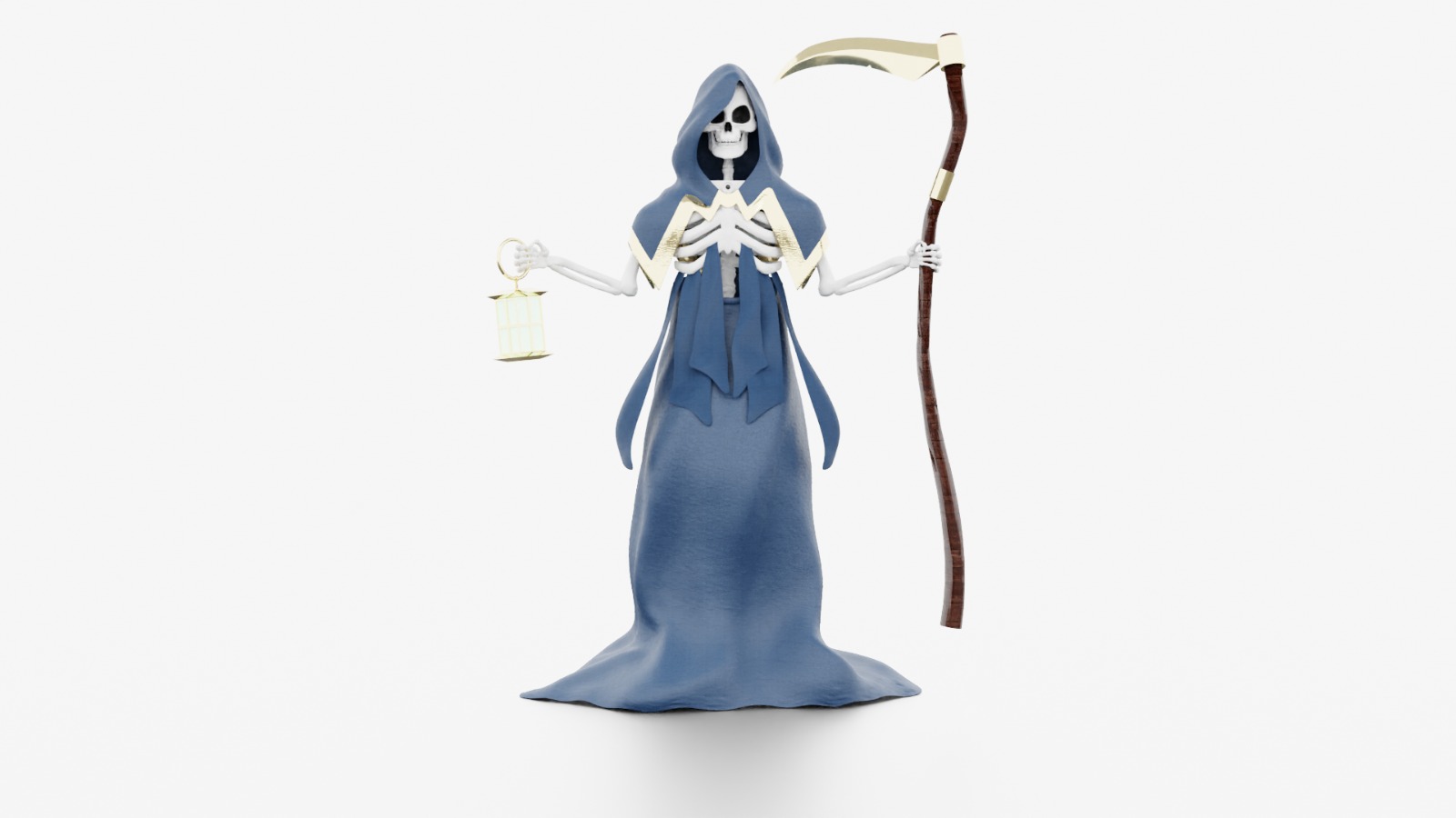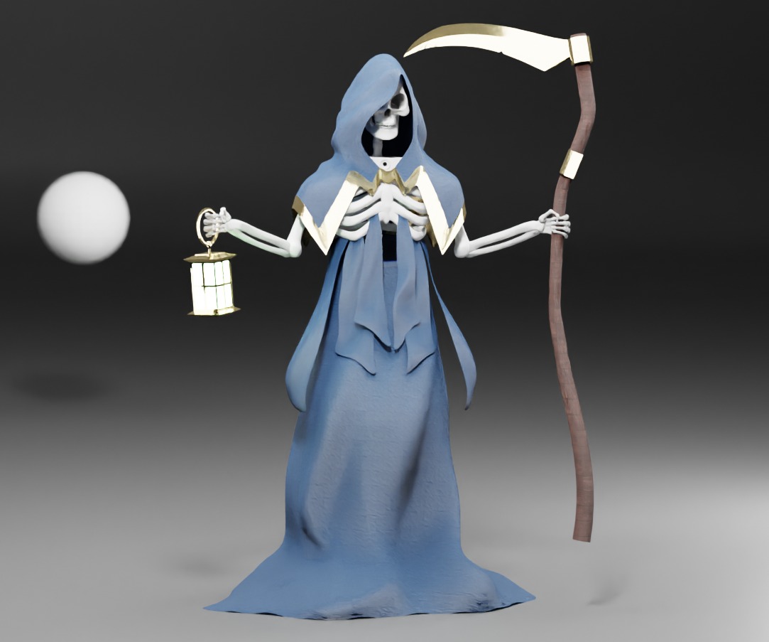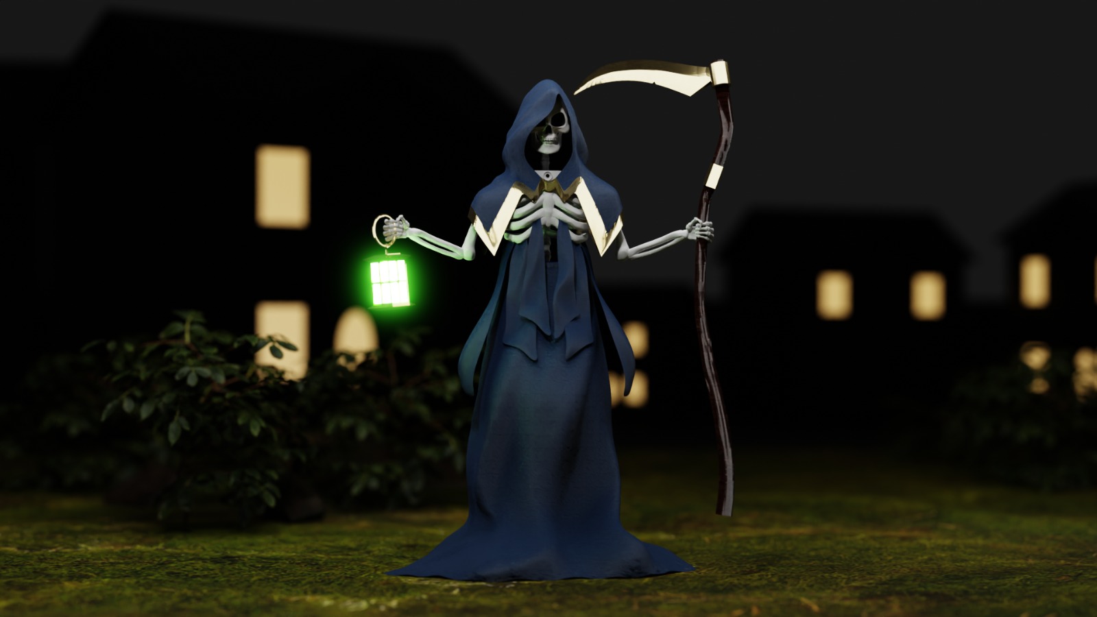 A 3D model of a motorized ‘grim reaper’ which will be used as a halloween decoration. Modeled and animated with Blender, rendered with Cycles. Part of the ‘robe’ is made using the ‘cloth’ simulation. Textured with Quixel Mixer.