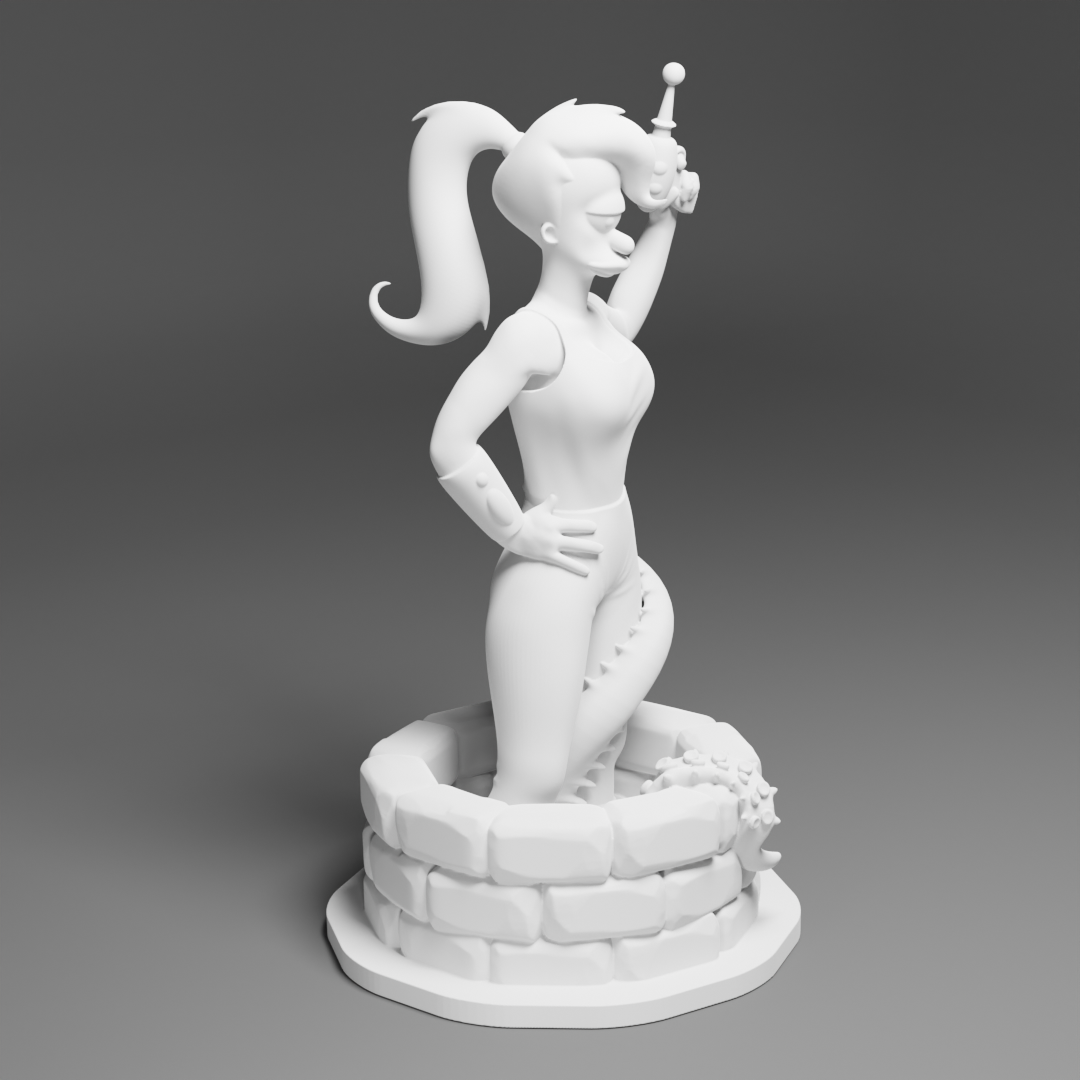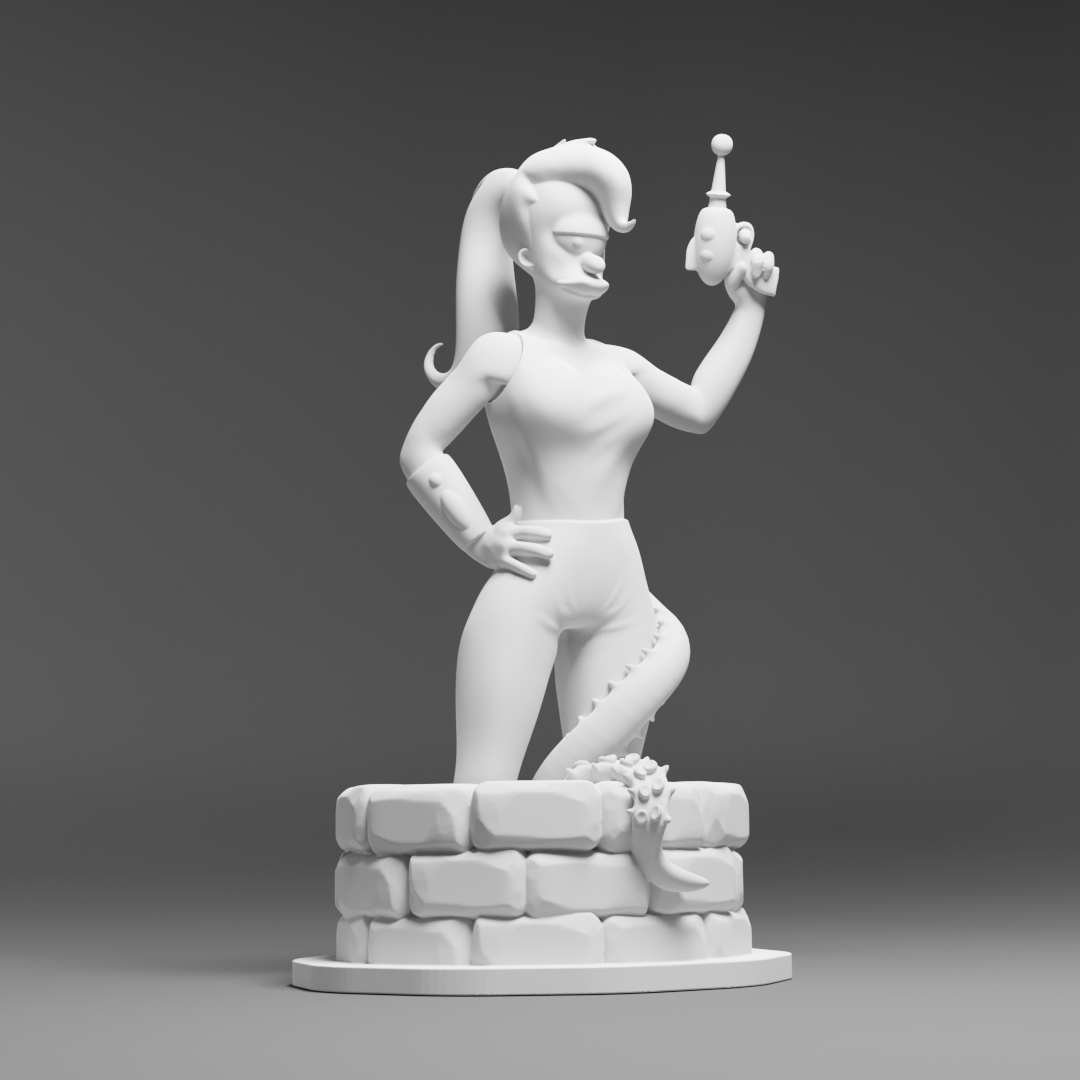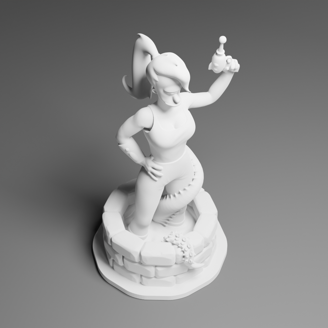 Inspired by Turanga Leela from the Futurama series. ‘Sculpted’ with Blender and 3D printed on a Photon Mono X (Anycubic). The renderings below made with Cycles in Blender.